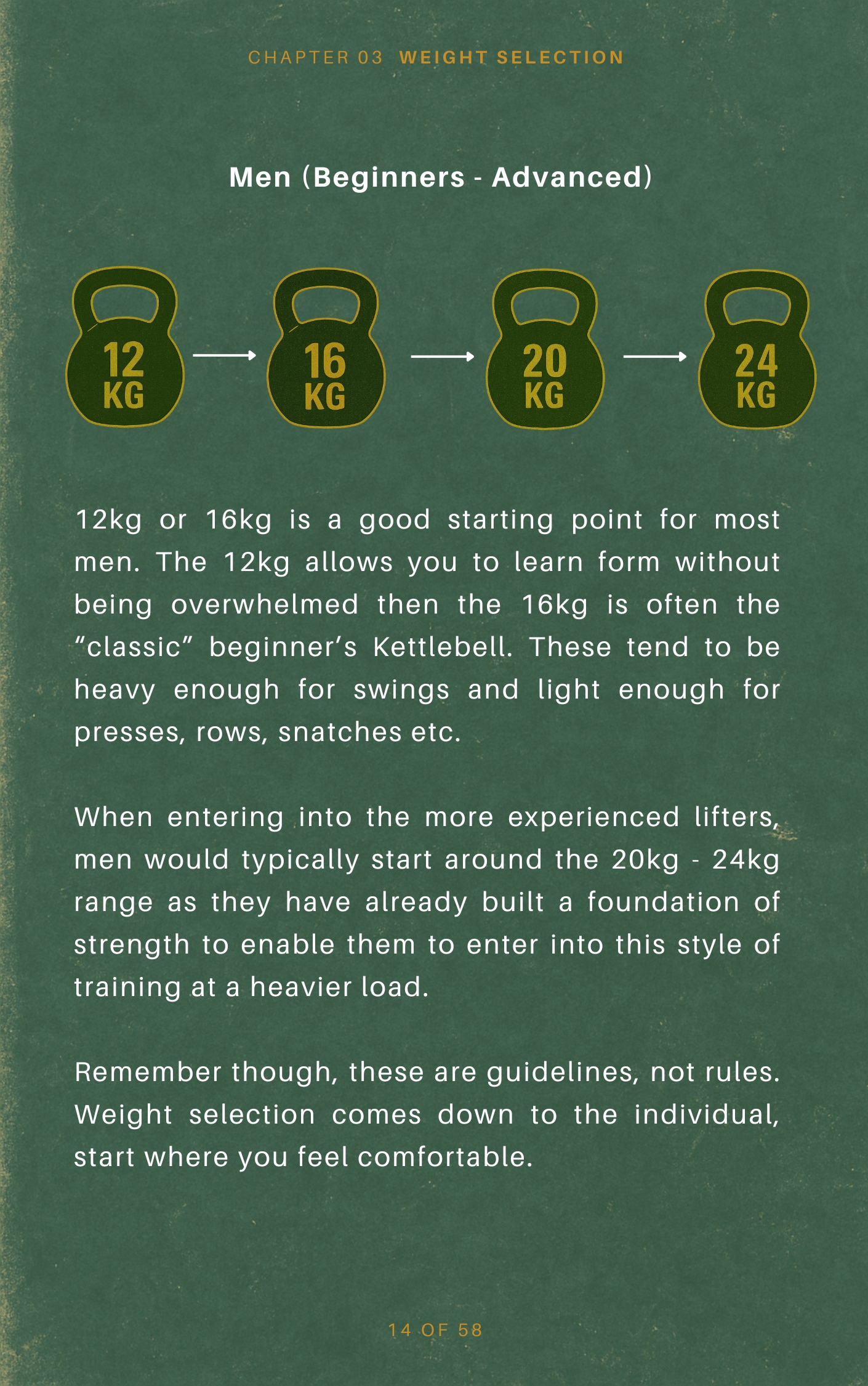 You’ll train three times per week, 1 kettlebell, 30 - 40 minutes, that’s it.